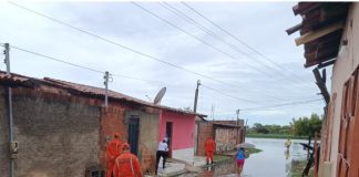 Após chuvas, Assistência Social de Bom Jesus da Lapa monitora avanço dos alagamentos no bairro Beira Rio e começa a retirar famílias