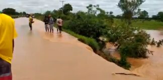 Vídeos: chuva forte alaga trecho da BA-161 em Serra do Ramalho
