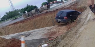 Veículo com quatro pessoas cai em buraco de obra da BR – 030, na região sudoeste