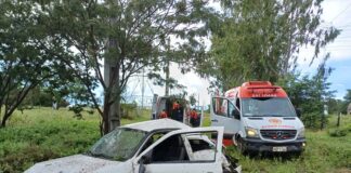 Carro capota e deixa duas pessoas feridas na BR-430, próximo a Bom Jesus da Lapa