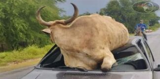 Vaca vai parar em cima de carro após acidente na BA-161 em Carinhanha