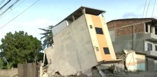 Prédio de três andares desaba parcialmente e fica inclinado em Vitória da Conquista