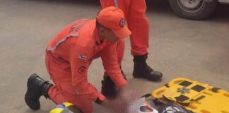 Bombeiros militares realizam atendimento de vítimas de colisão entre carro e motocicleta em Bom Jesus da Lapa