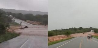 BA-262 entre Anagé e Brumado fica interditada após parte da rodovia ficar debaixo d’água