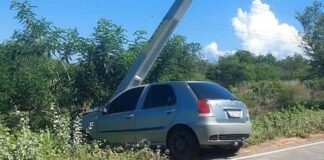 Motorista perde controle de veículo e colide em poste na BA-160, em Paratinga