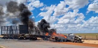 Dois motoristas morrem carbonizadas após batida entre carretas em Luís Eduardo Magalhães