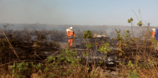 Bombeiros combatem incêndio na Serra da Bandeira em Barreiras