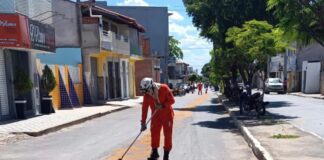 Corpo de Bombeiros Militar de Bom Jesus da Lapa atua em derramamento de óleo na Avenida Santa Catarina