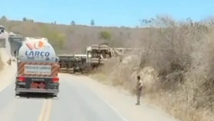 Uma carreta-tanque que transportava combustíveis, entre etanol e gasolina, tombou na BR-242, em Ibitiara, na manhã desta quinta-feira (30). Por causa do produto perigoso, a pista foi interditada.