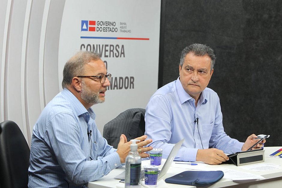 O governo da Bahia, Rui Costa, e o secretário da Saúde do estado, Fábio Vilas-Boas, se reuniram na manhã dessa quinta-feira (26) para uma videoconferência com prefeitos e prefeitas do interior do estado. Na reunião, Rui falou sobre o envio de máscaras e álcool gel para os municípios e a articulação que vem sendo feita pelo governo estadual para repasse das emendas parlamentares a fim de aplicação na área da saúde, nas diferentes regiões do estado.