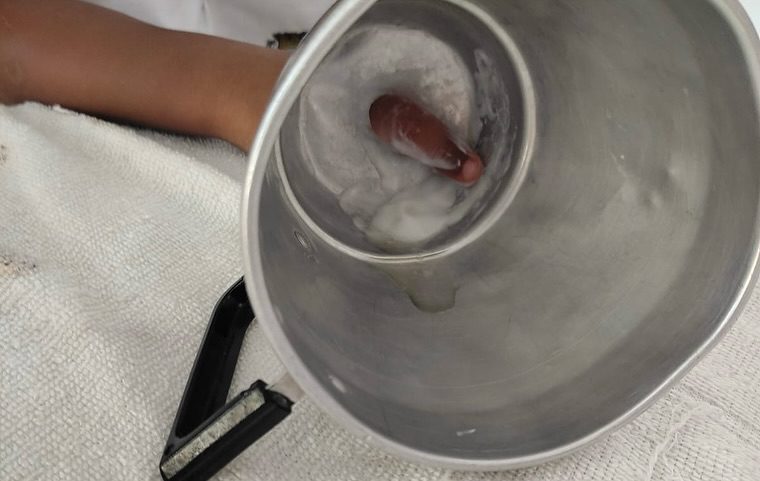 Após avaliarem a situação, os profissionais utilizaram técnicas específicas e equipamentos comumente usados para remover anéis — algo bastante frequente nas ocorrências desse tipo. Com precisão e cuidado, conseguiram soltar o dedo da criança, que estava preso em um pequeno orifício no fundo do recipiente.