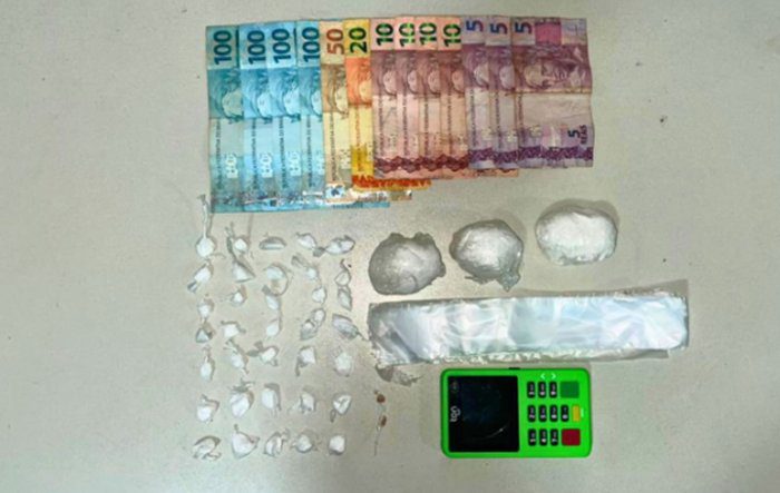 Durante a abordagem, os suspeitos tentaram se esconder, mas foram localizados. Com eles, os policiais apreenderam cerca de 160 gramas de substância semelhante à cocaína, porções de crack, R$ 525 em dinheiro, uma máquina de cartão e materiais utilizados para embalar drogas.