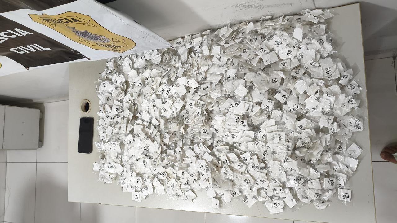 Na sequência, foi realizada uma busca pessoal e inspeção na bagagem de mão, onde os agentes encontraram uma grande quantidade de substância análoga à cocaína. Ao todo, foram apreendidos cerca de 3 mil papelotes da droga, somando aproximadamente 2,380 quilos, além de um aparelho celular da marca Realme.