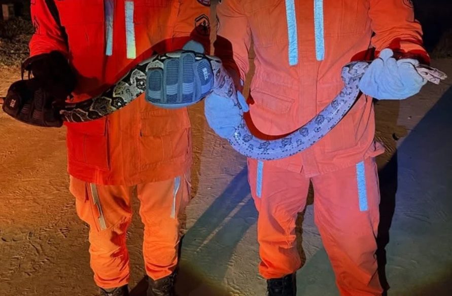A equipe do 20º Batalhão de Bombeiros Militar (BBM) foi acionada e realizou o resgate de forma segura. A cobra estava em uma área de vegetação baixa e não apresentava sinais de ferimentos.