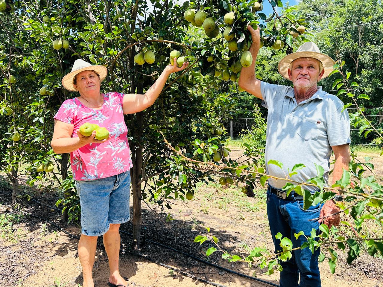 O projeto foi implantado no lote do casal de produtores Pedro Seibel e Sônia Marli Saifelt Seibel e já apresenta resultados expressivos com o cultivo da pera, uma fruta tradicionalmente associada às regiões de clima frio do Sul do país. O pomar, que completa três anos de implantação, surpreende pela produtividade e qualidade dos frutos, mesmo em solo arenoso e sob altas temperaturas.