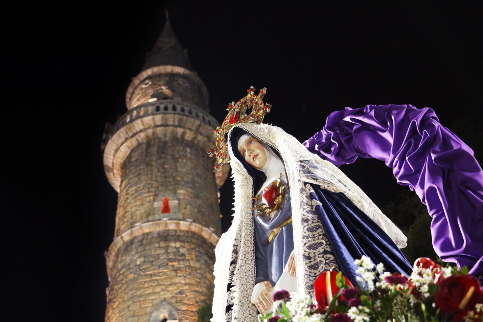As mulheres saíram da Catedral Nossa Senhora do Carmo com imagem de Nossa Senhora das Dores. Os homens saíram do Santuário levando a imagem de Nosso Senhor dos Passos.