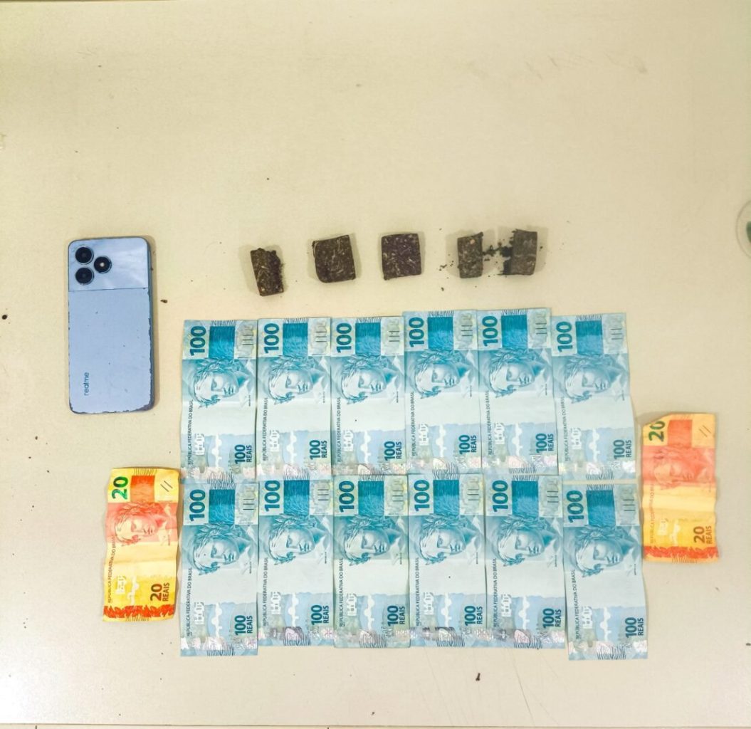 Ao todo, foram apreendidos drogas, dinheiro em espécie, um celular e uma motocicleta Honda CG Titan 150.