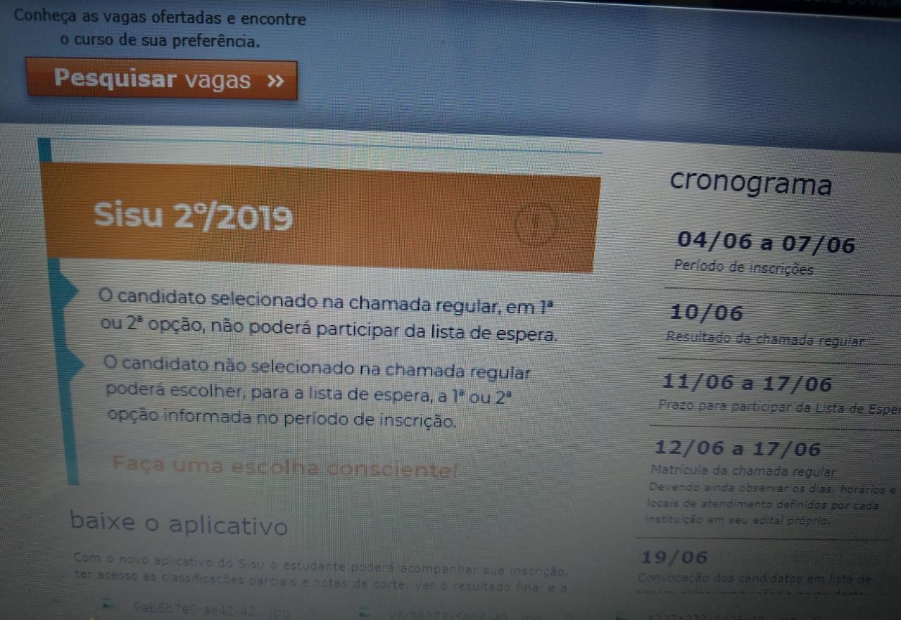 Mesmo antes do início das inscrições, candidatos podem consultar na página do Sisu as vagas que serão ofertadas em instituições públicas de ensino superior no segundo semestre deste ano. A busca pode ser feita por curso, instituição de ensino e por município.