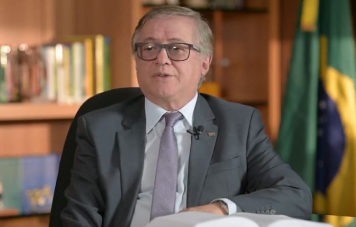 Questionado quando retirou o trecho do slogan, respondeu: “Saiu hoje de circulação”. O ministro deu a declaração na manhã desta terça no Senado após se reunir com o presidente da Casa, senador Davi Alcolumbre (DEM-AP).