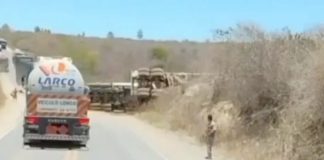 Caminhão boiadeiro tomba na BR-030 em Malhada e moradores saqueiam carne…
