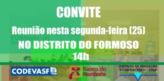 Convite : Distrito e CODEVASF convidam produtores do Formoso para reunião nesta segunda com os Presidentes da CODEVASF e do Banco do Nordeste