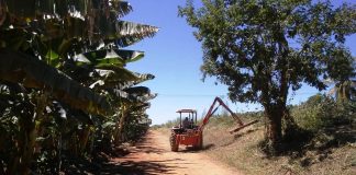 Distrito trabalhando: DIF realiza serviços de supressão de vegetação em laterais dos canais
