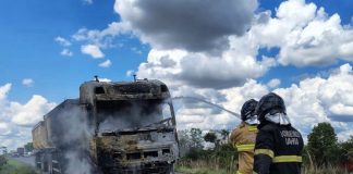 Bombeiros do 20º BBM de Bom Jesus da Lapa combatem incêndio em carreta na BR-349