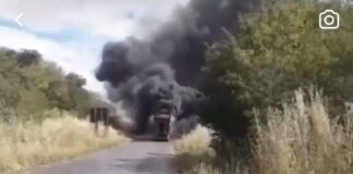 Carreta que transportava gado pega fogo na BR-349 em Correntina; um animal morreu