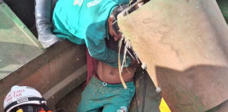 Bombeiros resgatam homem que ficou preso no eixo de colheitadeira em Luís Eduardo Magalhães