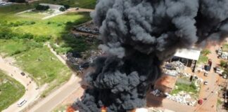 Incêndio de grande proporção atinge depósito de reciclagem em Luís Eduardo Magalhães