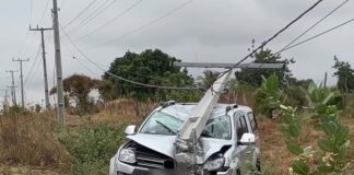 Caminhonete colide e derruba poste na BA-160 em Ibotirama