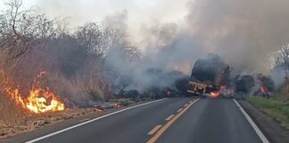 Mais de 24 horas depois, trecho de rodovia no oeste da Bahia onde carreta pegou fogo é liberado