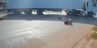 Entregador escapa por um triz de ser esmagado por carreta em Barreiras