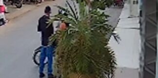 Câmera flagra mulher tendo moto roubada em plena luz do dia no centro de Santa Maria da Vitória