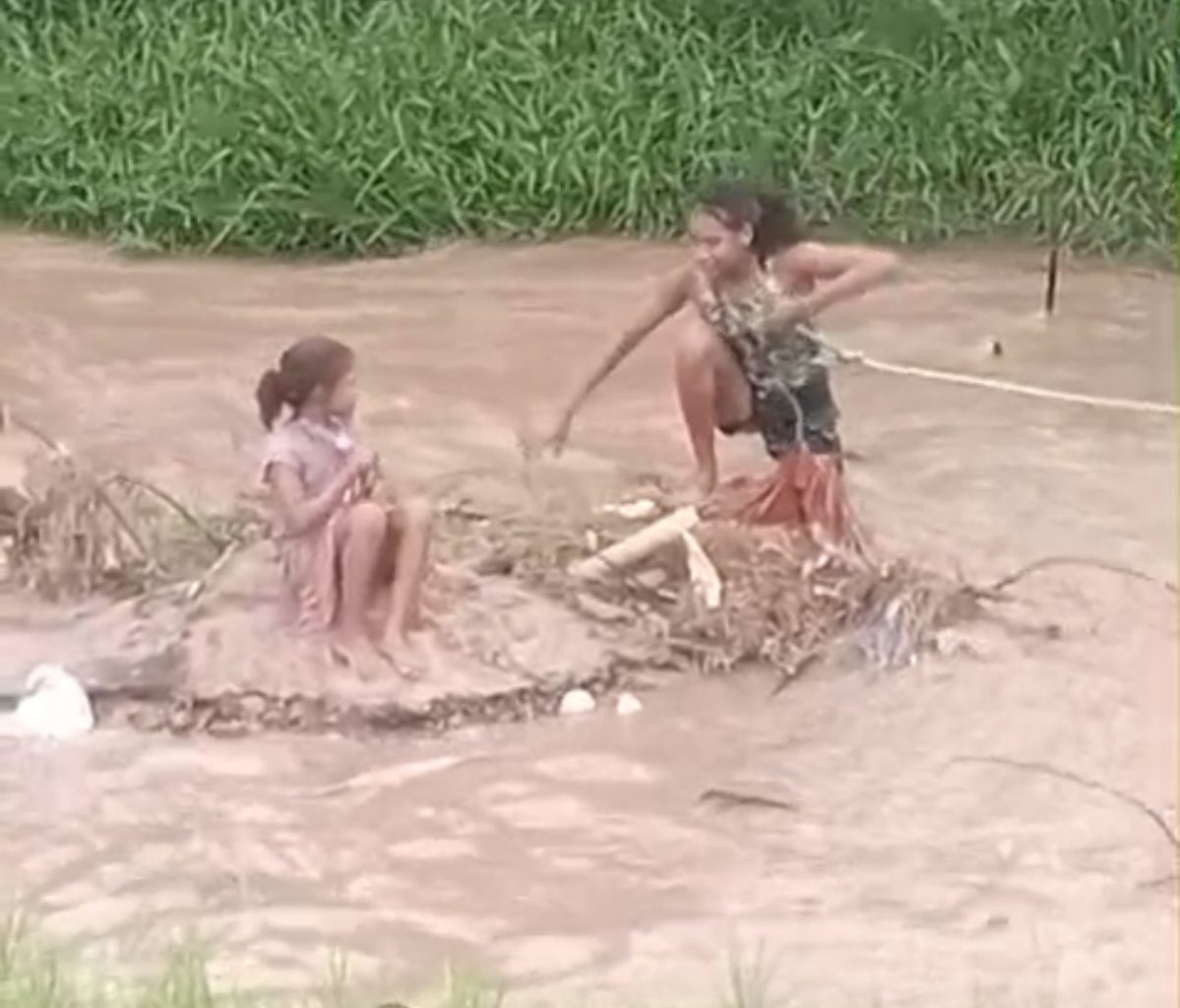 Com a força da correnteza aumentando a cada minuto, moradores que estavam no local viveram momentos de apreensão ao perceberem que a criança não conseguia sair sozinha do canal. Diante da situação crítica, uma adolescente tomou uma atitude decisiva: amarrada a uma corda, ela entrou no canal, enfrentando a água forte para alcançar a criança.