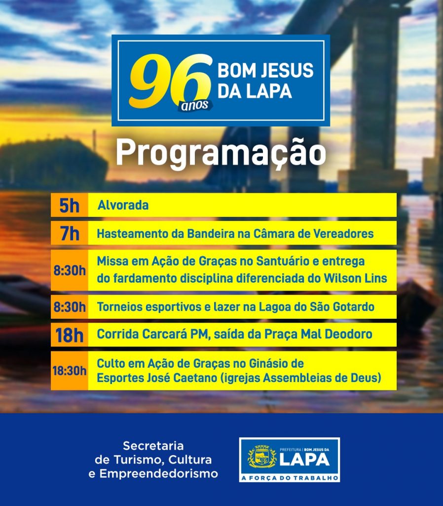 A Capital Baiana da Fé completa 96 anos de emancipação política neste sábado(31). Para comemorar a data, serão realizadas uma séries de ações durante o sábado, como: Alvorada, hasteamento da Bandeira, missa de Ação de Graças, torneio esportivo, corrida e culto de Ação de Graças.