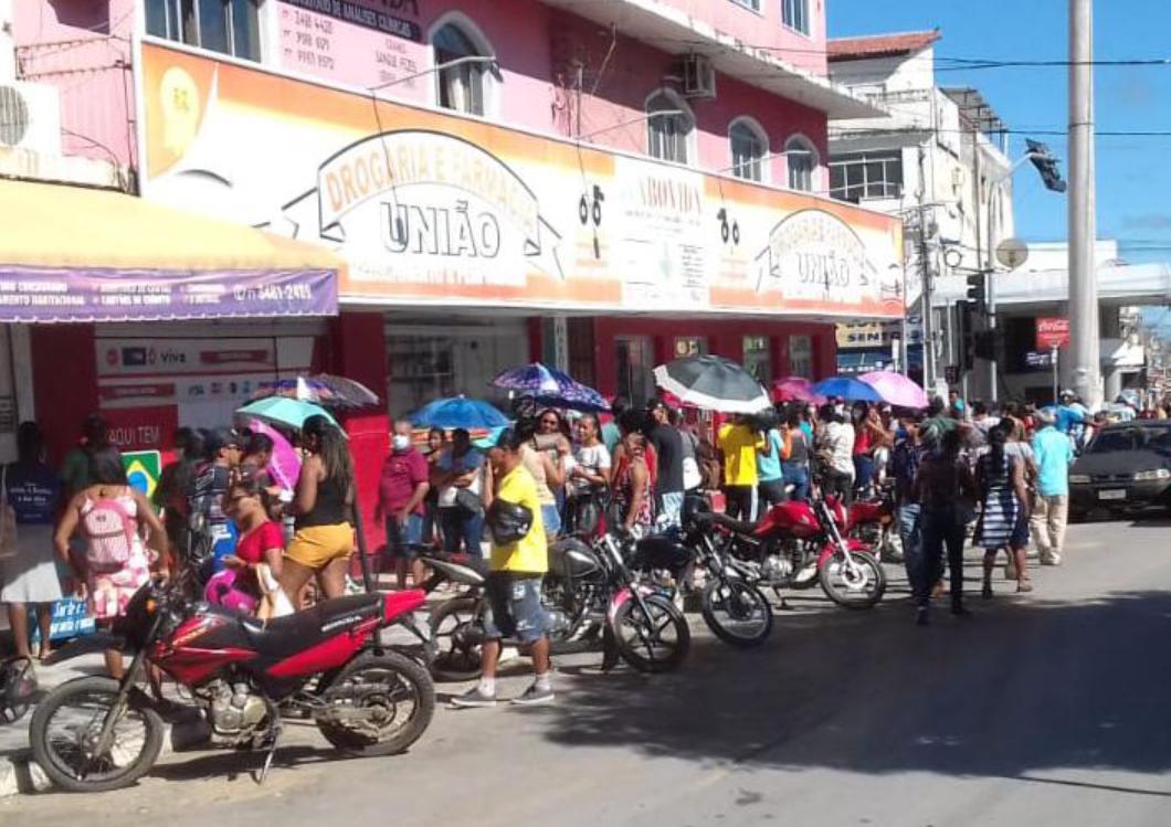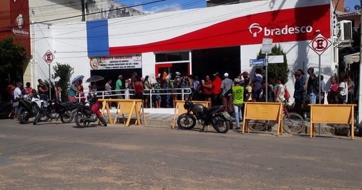 Grandes filas foram formadas na manhã desta segunda-feira (20), em casas lotéricas da cidade de Bom Jesus da Lapa e também na agência da Caixa Econômica Federal. A maioria estava no local por causa do pagamento do auxílio de R$ 600 disponibilizado pelo governo federal, mas também havia pessoas que foram fazer pagamentos de contas.