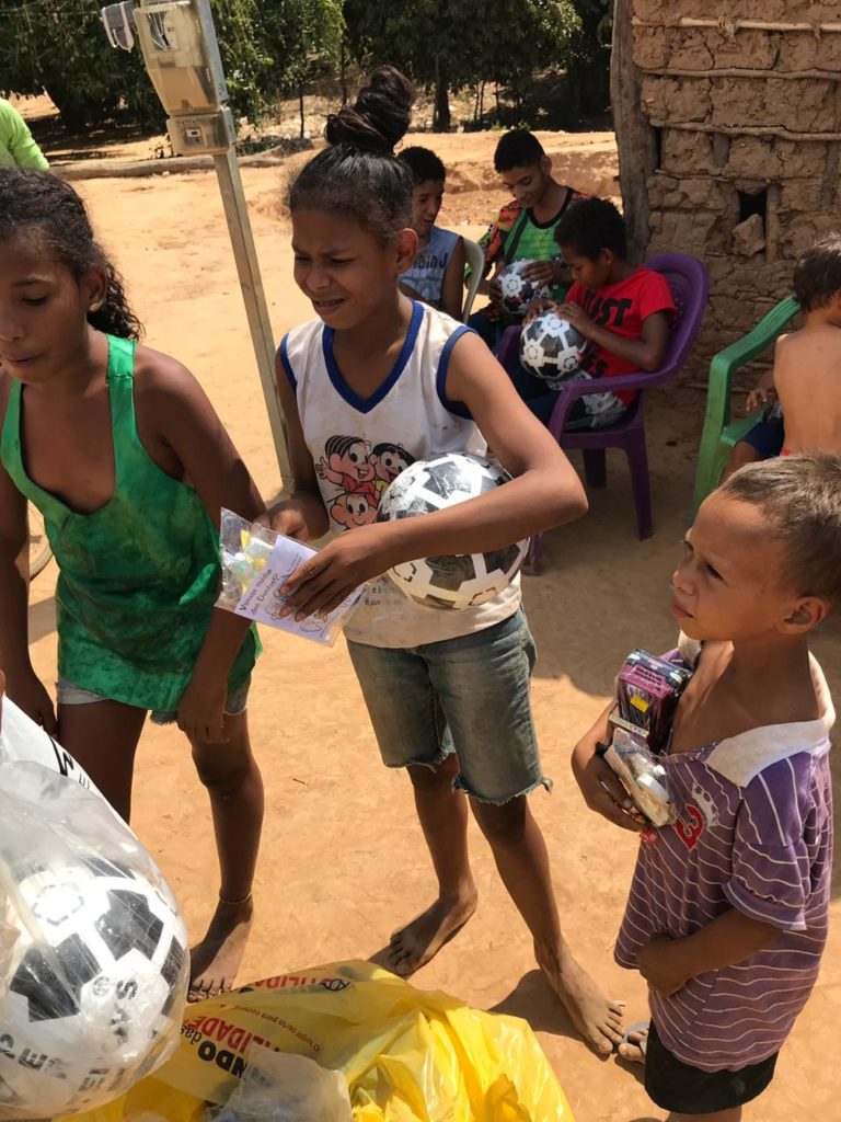 Na ação Social, as crianças do povoado foram beneficiadas com distribuição de brinquedos e kit para a prevenção direcionadas à Saúde Bucal e cuidados com a higiene Pessoal.