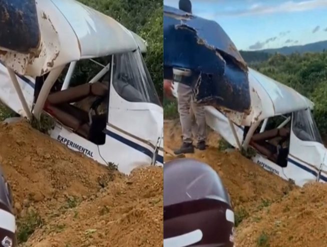 Um avião de pequeno porte precisou realizar um pouso forçado na tarde desta quinta-feira(5), em Guanambi, no sudoeste da Bahia, após apresentar falha no motor durante um voo. Duas pessoas ficaram feridas, mas passam bem.