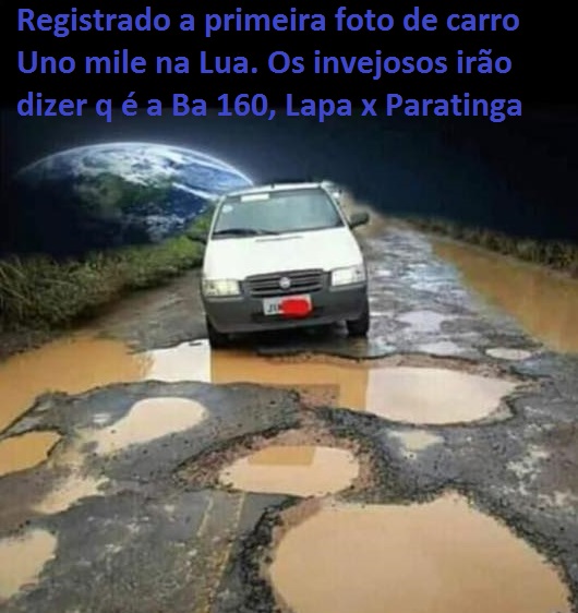 A postagem descreve: “Registrado a primeira foto de carro Uno mile na Lua”. Os invejosos irão dizer que é a Ba 160, Bom Jesus da Lapa x Paratinga“.