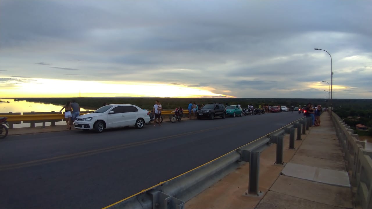 Neste domingo(15), dia que o rio começou a estabilizar o seu nível, dezenas de lapenses pararam sobre a ponte para apreciar a cheia do Velho Chico.
