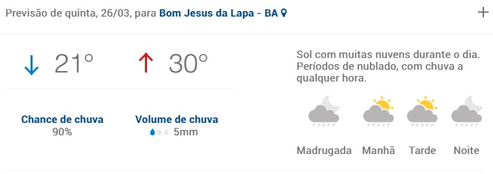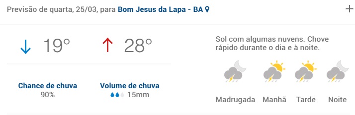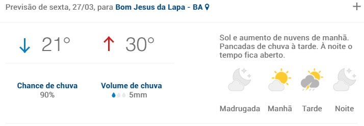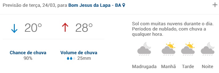 As chuvas que começaram nesta segunda-feira(23) em Bom Jesus da Lapa, continuará fazendo parte da rotina dos lapenses nesta terça-feira(24), e a previsão é seguir até o final de semana.