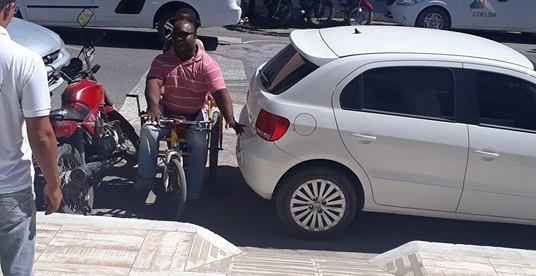 Mais um flagrante de desrespeito ao CTB (Código de Trânsito Brasileiro) foi feito na manhã desta quarta-feira (17), em frente a Câmara de Vearadores, localizada na Avenida Duque de Caixias, no centro de Bom Jesus da Lapa. Dessa fez o descaso foi contra um cadeirante, que precisou da ajuda de uma servidor da Casa para subir à calçada.