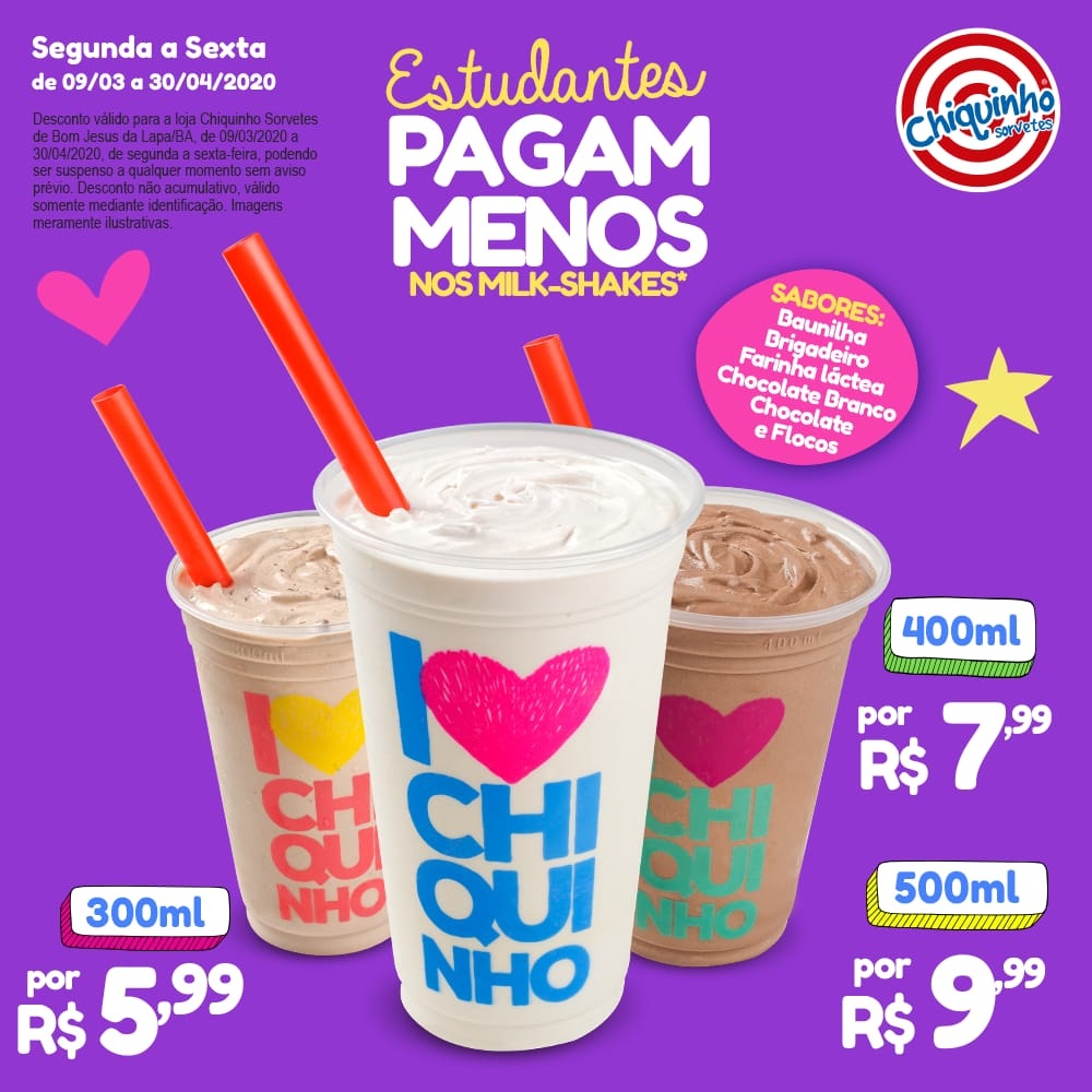 A vida de estudante é tudo de bom. Aprendizado, desafios e muitas amizades. E pra ficar ainda melhor, a Chiquinho Sorvetes está com uma mega promoção para os nossos estudantes. É pra ninguém ficar de fora!