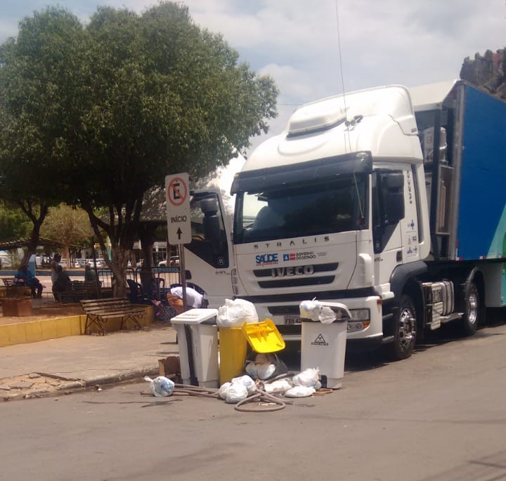 Mas um detalhe chamou a atenção de quem passava pela praça, onde os atendimentos ocorreram: Lixeiras espalhadas com materiais que foram usados nos atendimentos de saúde.