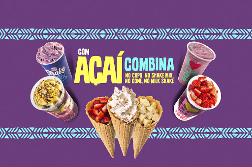 Açaí combina no copo, no shake mix, no cone, no milk-shake e você pode pedir o seu como quiser. São diversas opções de complementos pra combinar. Pra você Açaí combina com o quê?