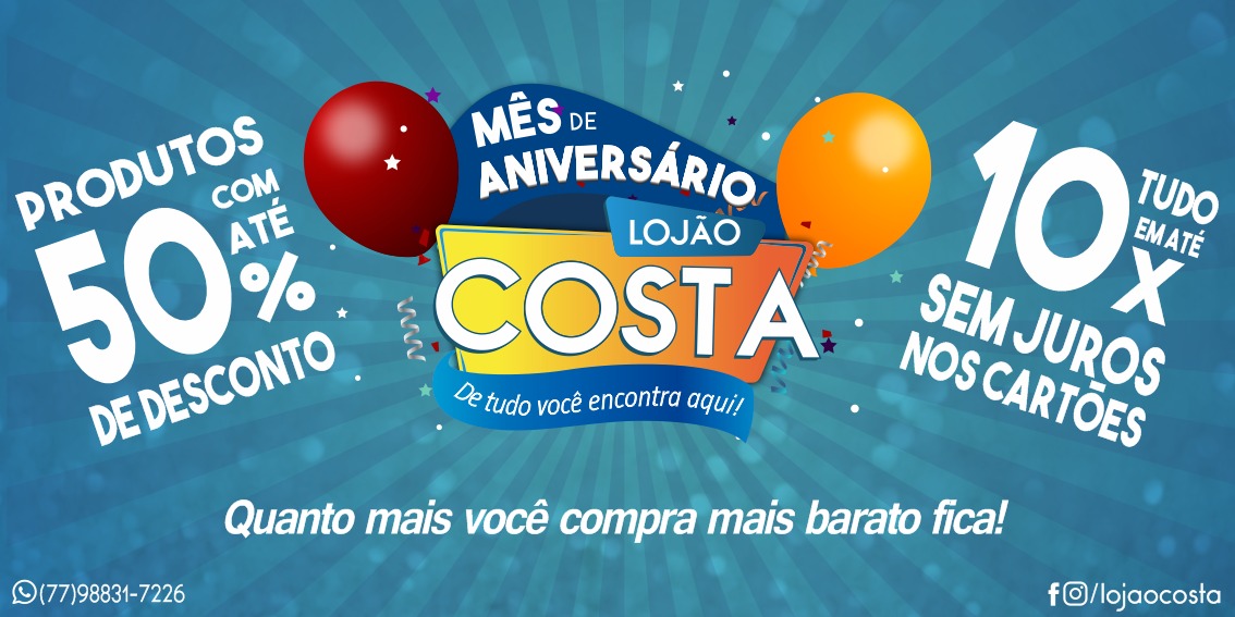 Venha para o Lojão Costa e aproveite as promoções exclusivas de aniversário da Loja.