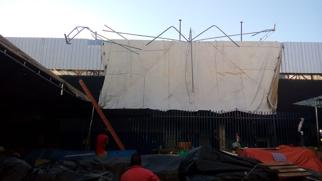Forte ventania registrada nesta sexta-feira(13) em Bom Jesus da Lapa, mais uma vez, joga barraca sobre o Mercado Municipal Dona Firmina, causando alguns estragos e deixado os barraqueiros e visitantes do local assutados.