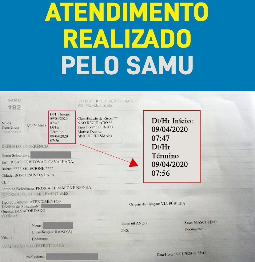 Em nota para a redação do Site Notícias da Lapa, o Secretário de Saúde de Bom Jesus da Lapa, Marcélio Magno, afirmou que Samu cumpriu o procedimento padrão para atender ocorrências. Ele destacou que o atendente do centro de atendimento do Samu precisa seguir alguns protocolos, já que o órgão recebe muitos trotes, e o médico tem que fazer perguntas. E muitos resolvem pela regulação médica.