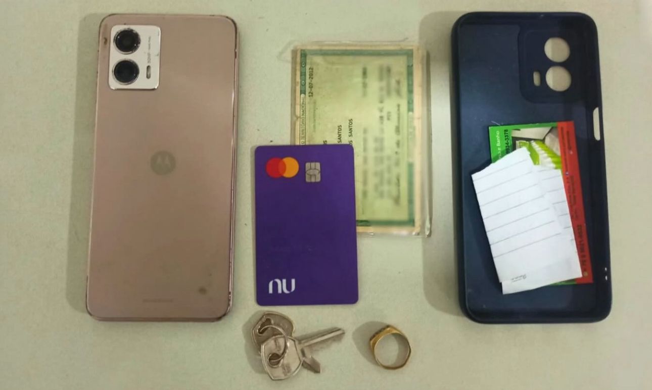 A equipe iniciou buscas imediatas e conseguiu localizar o suspeito nas proximidades. Na abordagem, os policiais encontraram o aparelho celular roubado e um documento pertencente à vítima, confirmando o relato dos moradores.